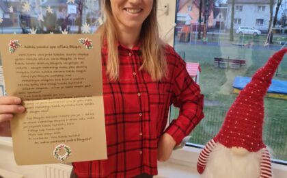Gruodžio 11 d. „Pokšt“ grupėje lankėsi mama Malvina, kuri pradžiugino „Kalėdų pasaka apie Elfiuką Blizgutį“ ir pakvietė mažuosius į kūrybinę veiklą – kartu pasigaminti stebuklingą lipšnuką. Vaikai džiaugėsi galėdami savo rankomis sukurti ką nors ypatingo. Dėkojame mamytei už bendradarbiavimą, kūrybiškumą ir prasmingai praleistą laiką.