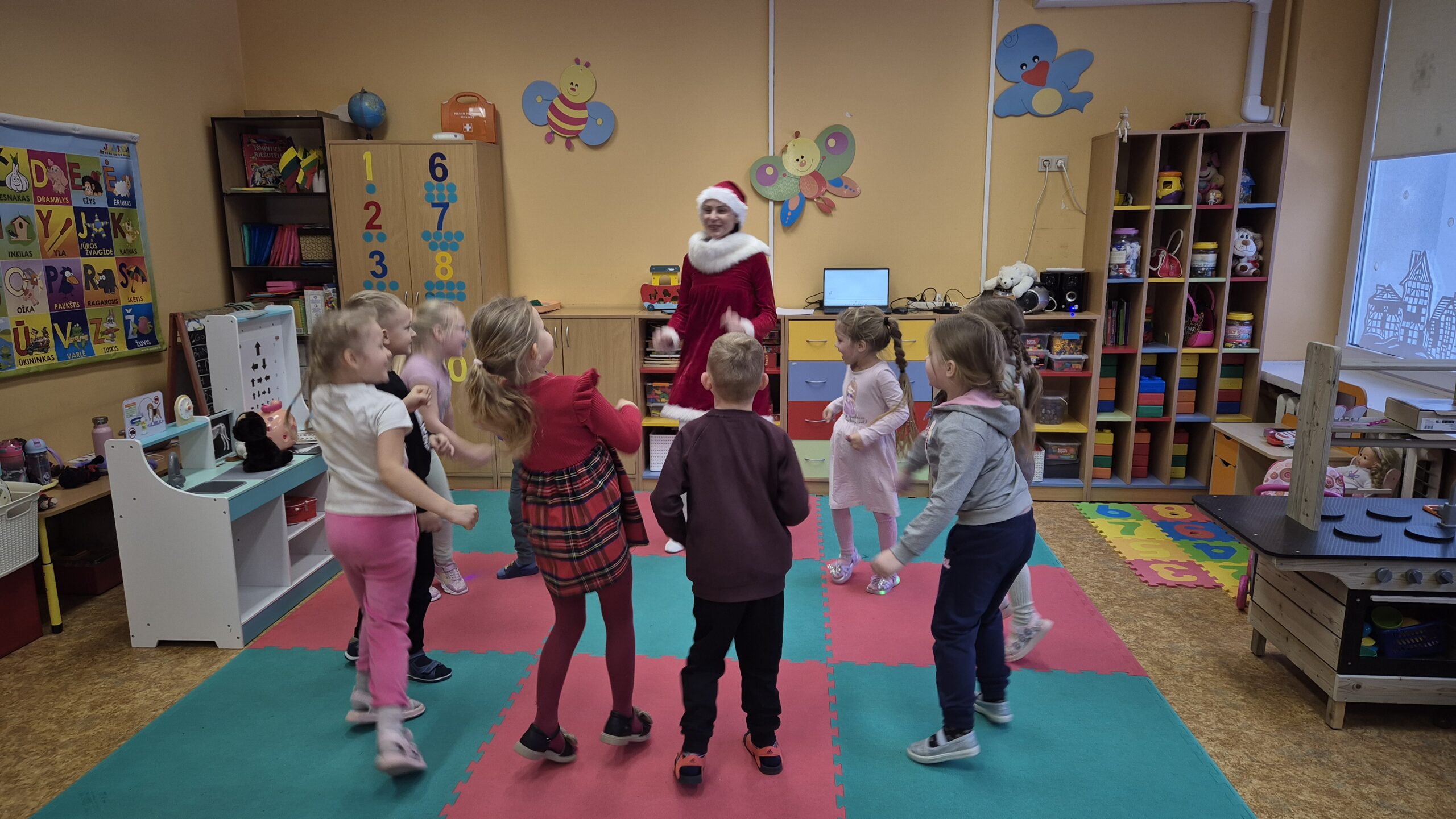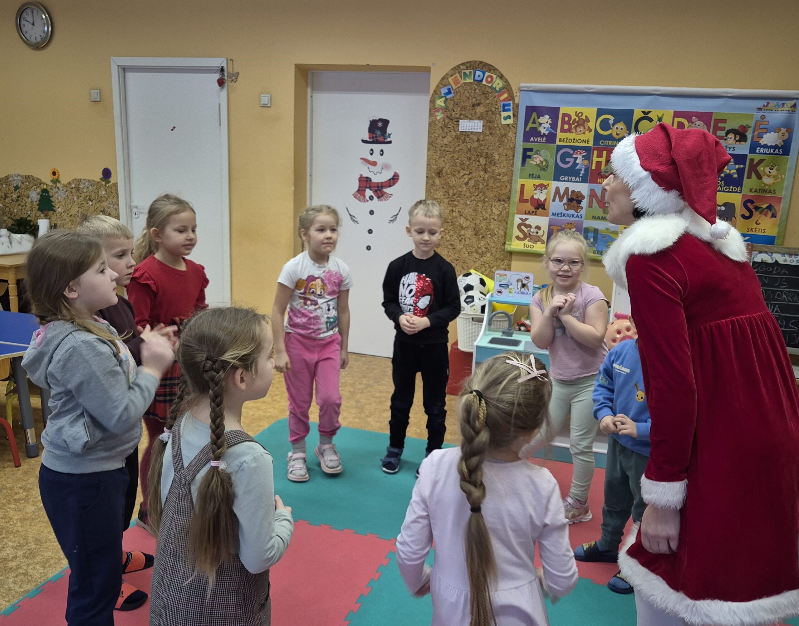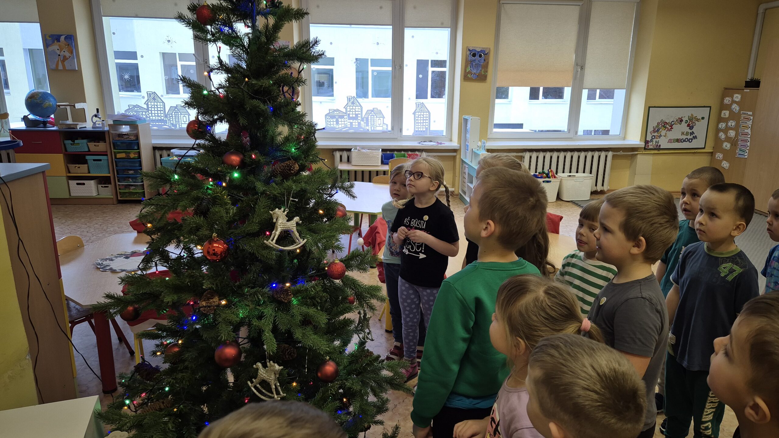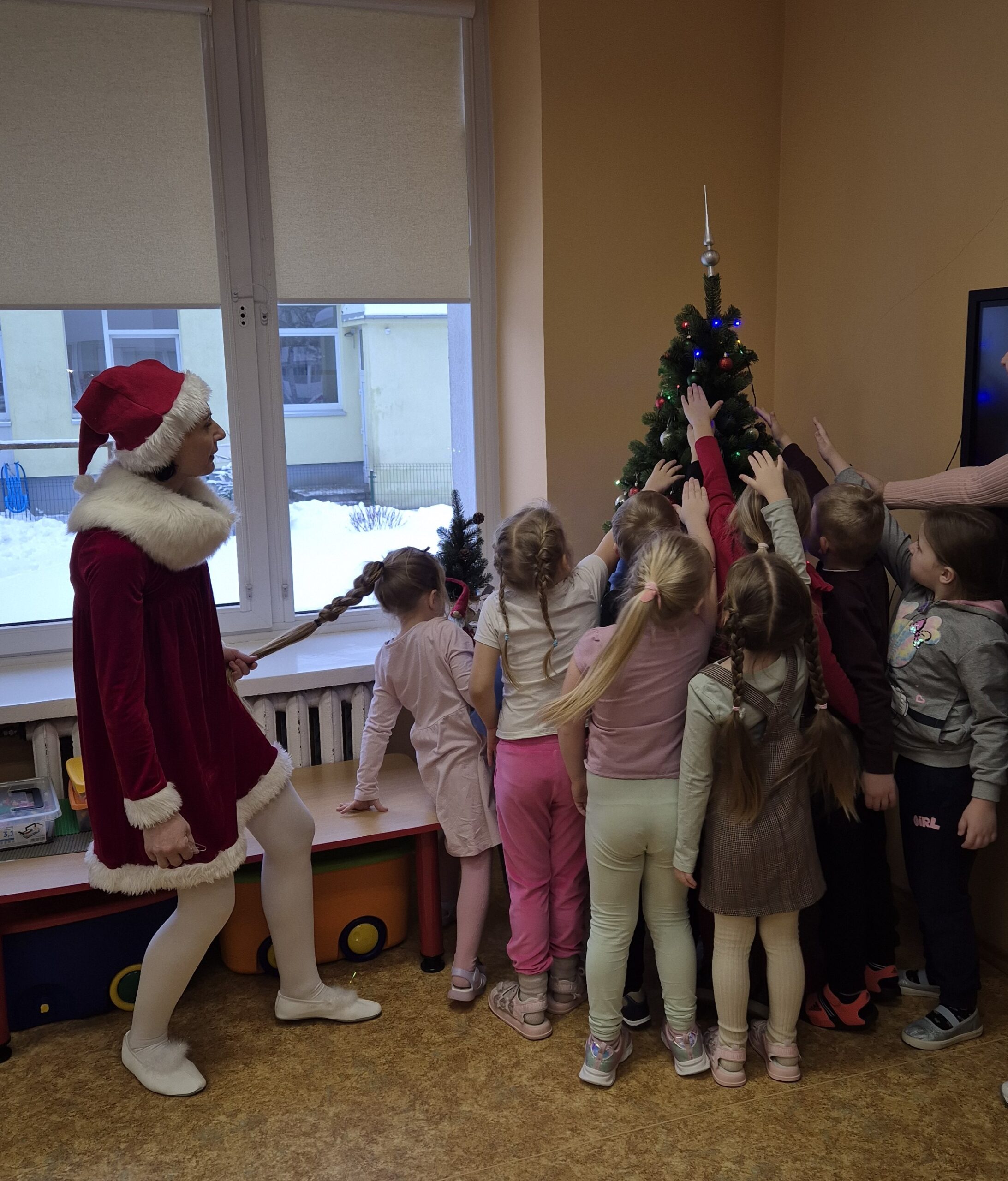 Į svečius pas vaikučius atėjo Nykštukas, kuris padėjo vaikams nupuošti Kalėdų eglutes, kartu prisiminė praėjusias šventes ir džiaugėsi gražiomis akimirkomis. Vaikai kartu su Nykštuku šoko, dainavo, žaidė žaidimus. Atsisveikindami su eglute vaikai dėkojo už dovanėles ir šventinį džiaugsmą, pažadėdami jos laukti ir kitais metais.