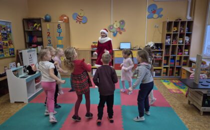 Į svečius pas vaikučius atėjo Nykštukas, kuris padėjo vaikams nupuošti Kalėdų eglutes, kartu prisiminė praėjusias šventes ir džiaugėsi gražiomis akimirkomis. Vaikai kartu su Nykštuku šoko, dainavo, žaidė žaidimus. Atsisveikindami su eglute vaikai dėkojo už dovanėles ir šventinį džiaugsmą, pažadėdami jos laukti ir kitais metais.