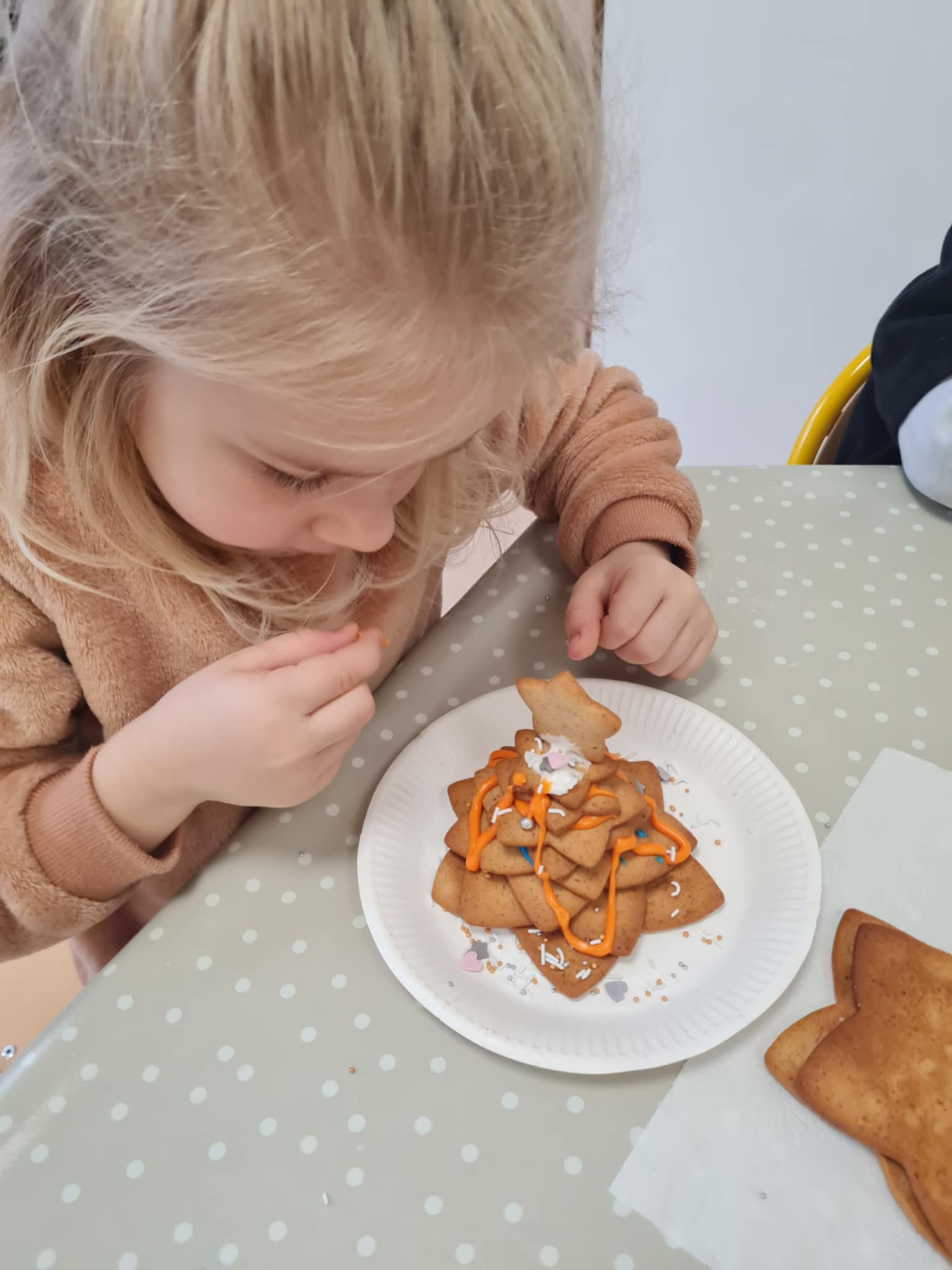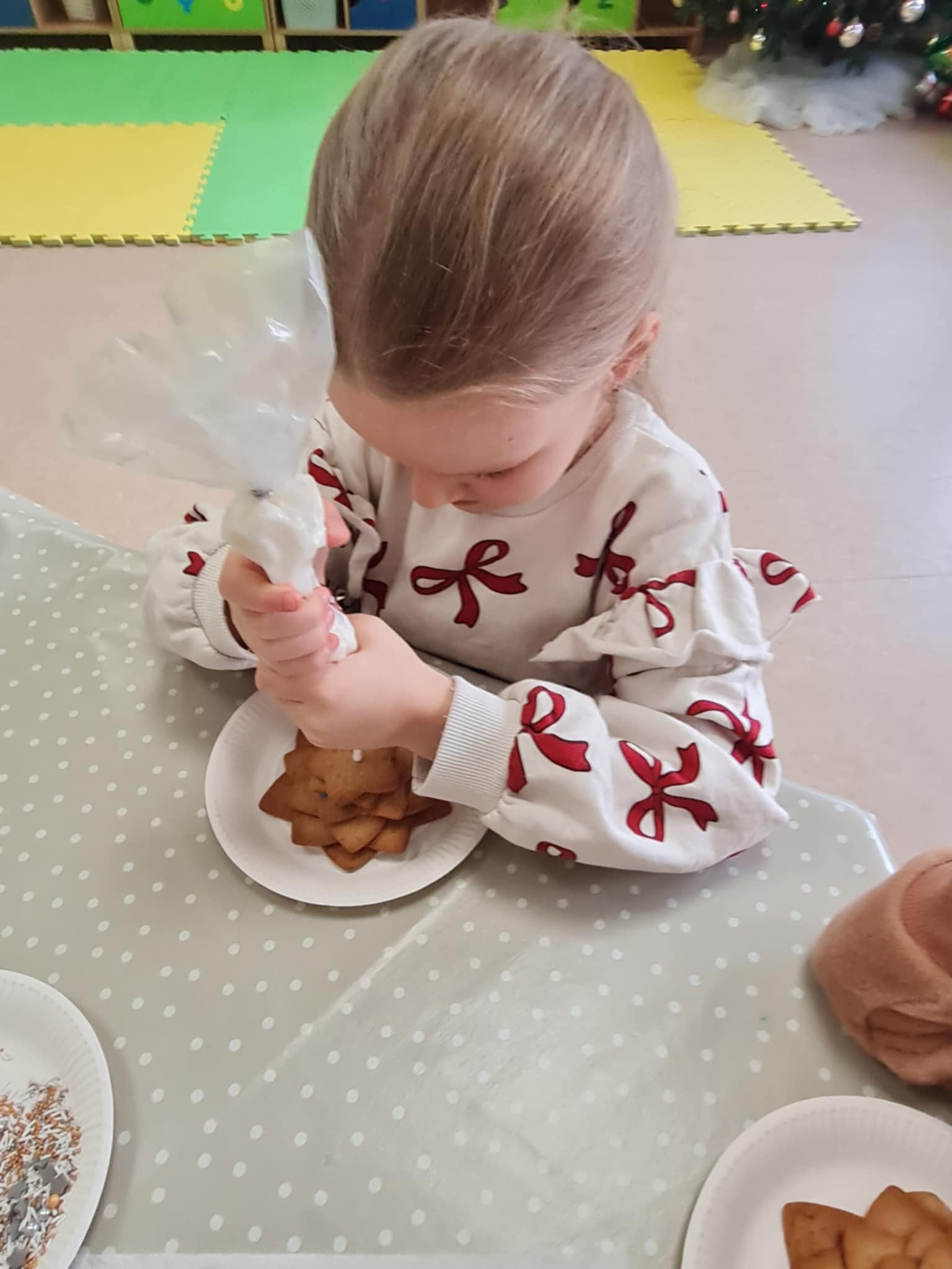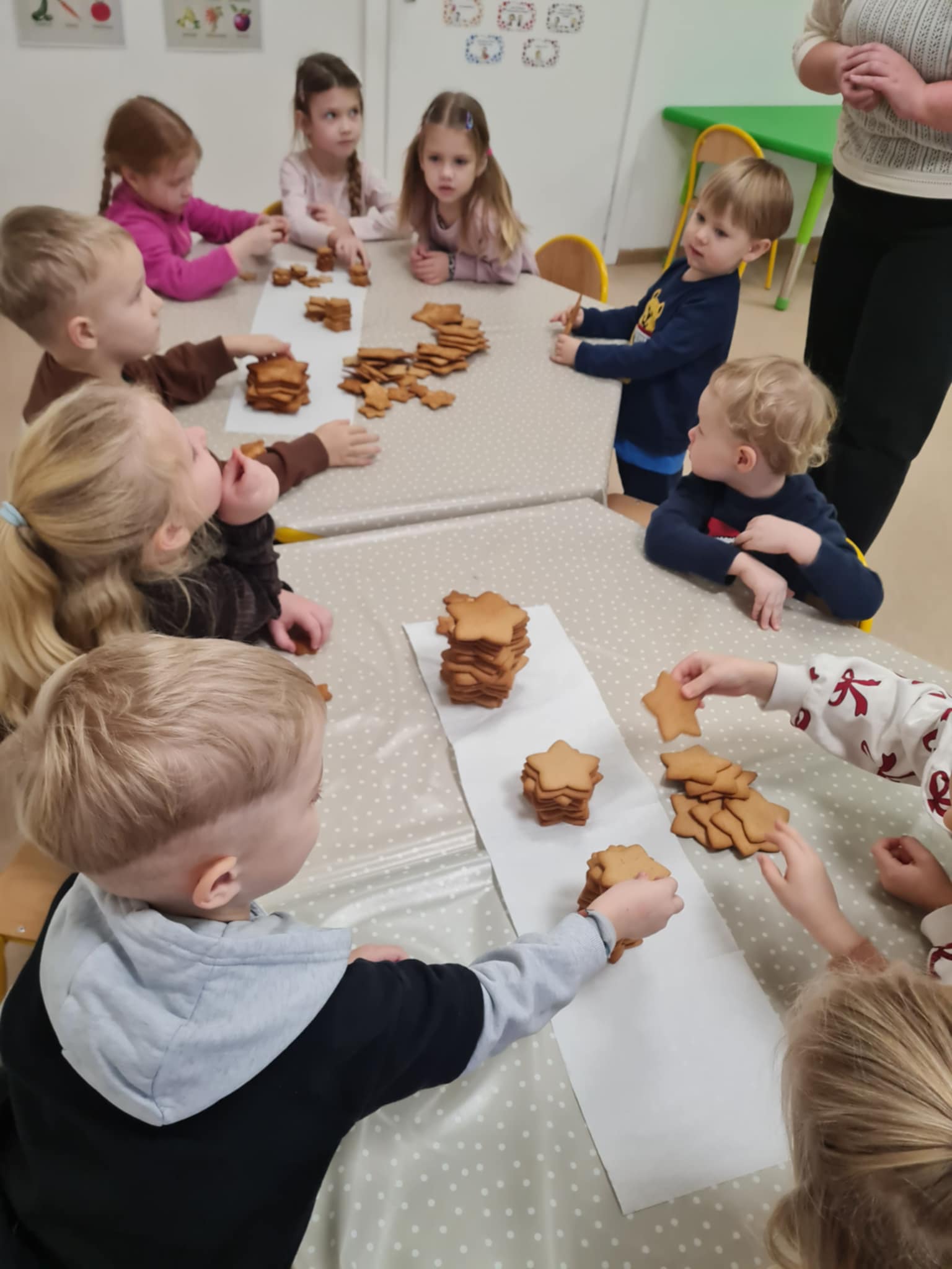 Gruodžio 9 d. „Pokšt“ grupė sulaukė svečių – atvyko Kalėdų Elfė, kuri vaikučiams pasekė pasaką apie eglutę vardu Cinamonė. Po pasakos mažieji iš imbierinių sausainių statė ir puošė Kalėdines eglutes.  Dėkojame mamytei Kristinai už Kalėdinę edukaciją!