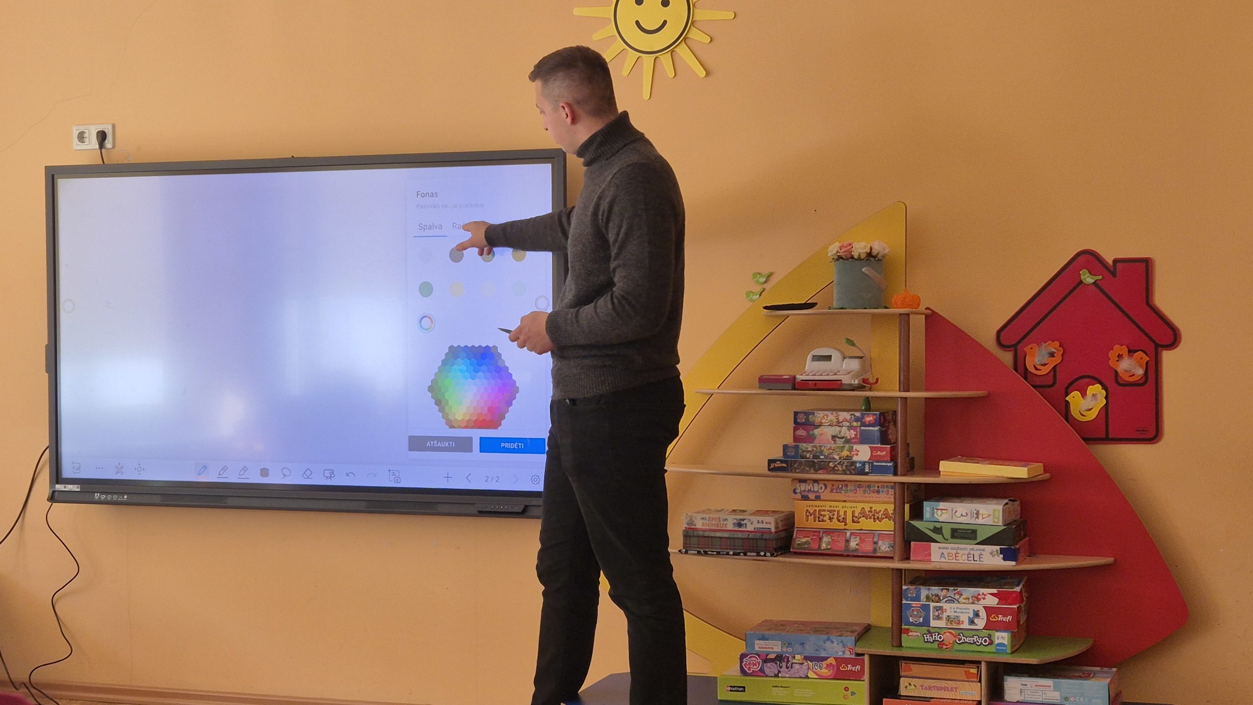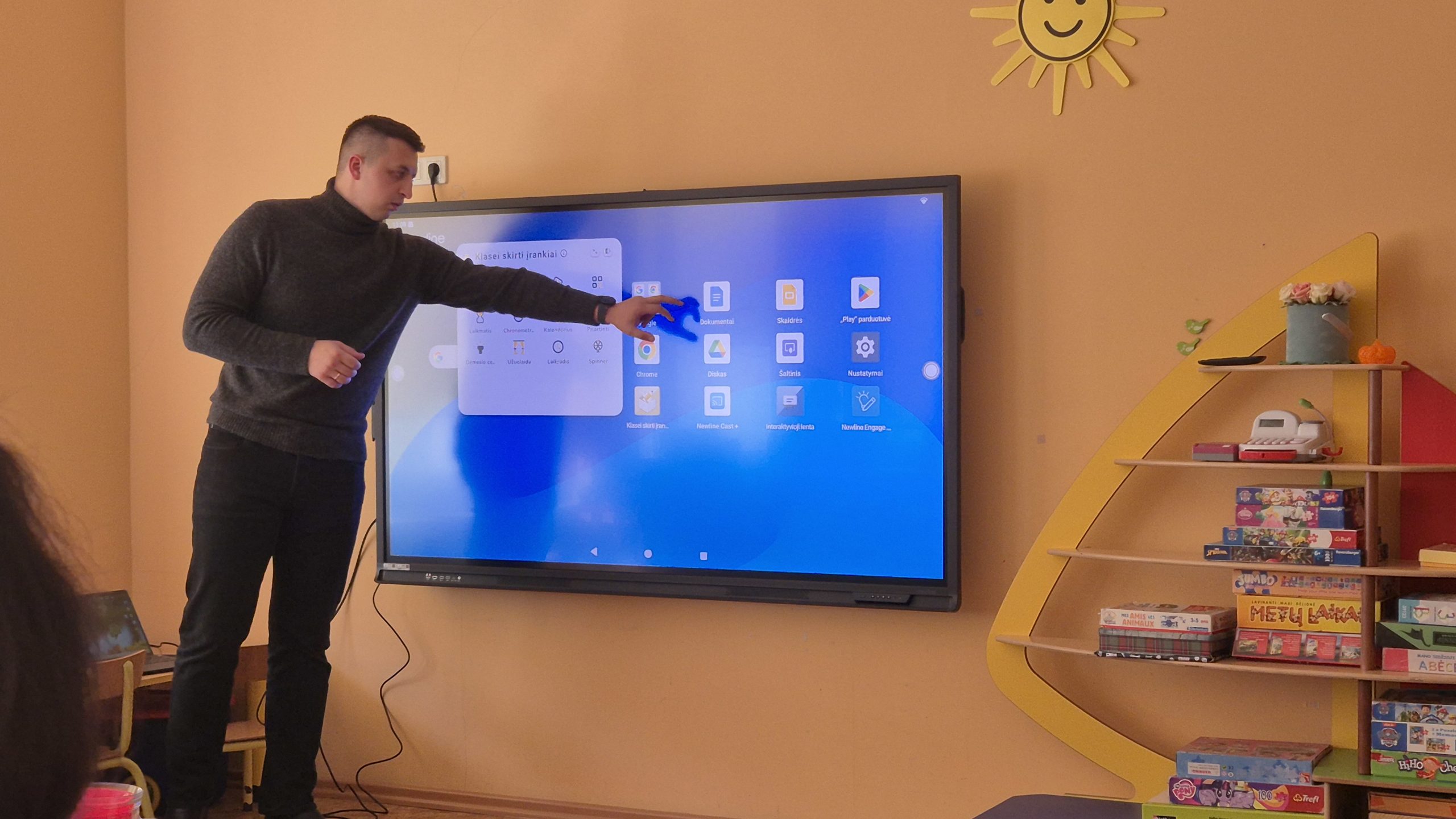 Spalio 14 d. darželyje vyko mokymai, skirti susipažinti su interaktyvaus ekrano galimybėmis ugdymo procese. Dalyviai išbandė įvairius įrankius, kurie padeda mokymą(si) paversti įdomesniu ir kūrybiškesniu! Mokytojo vaidmuo keičiasi – technologijos tampa neatsiejama ugdymo dalimi!