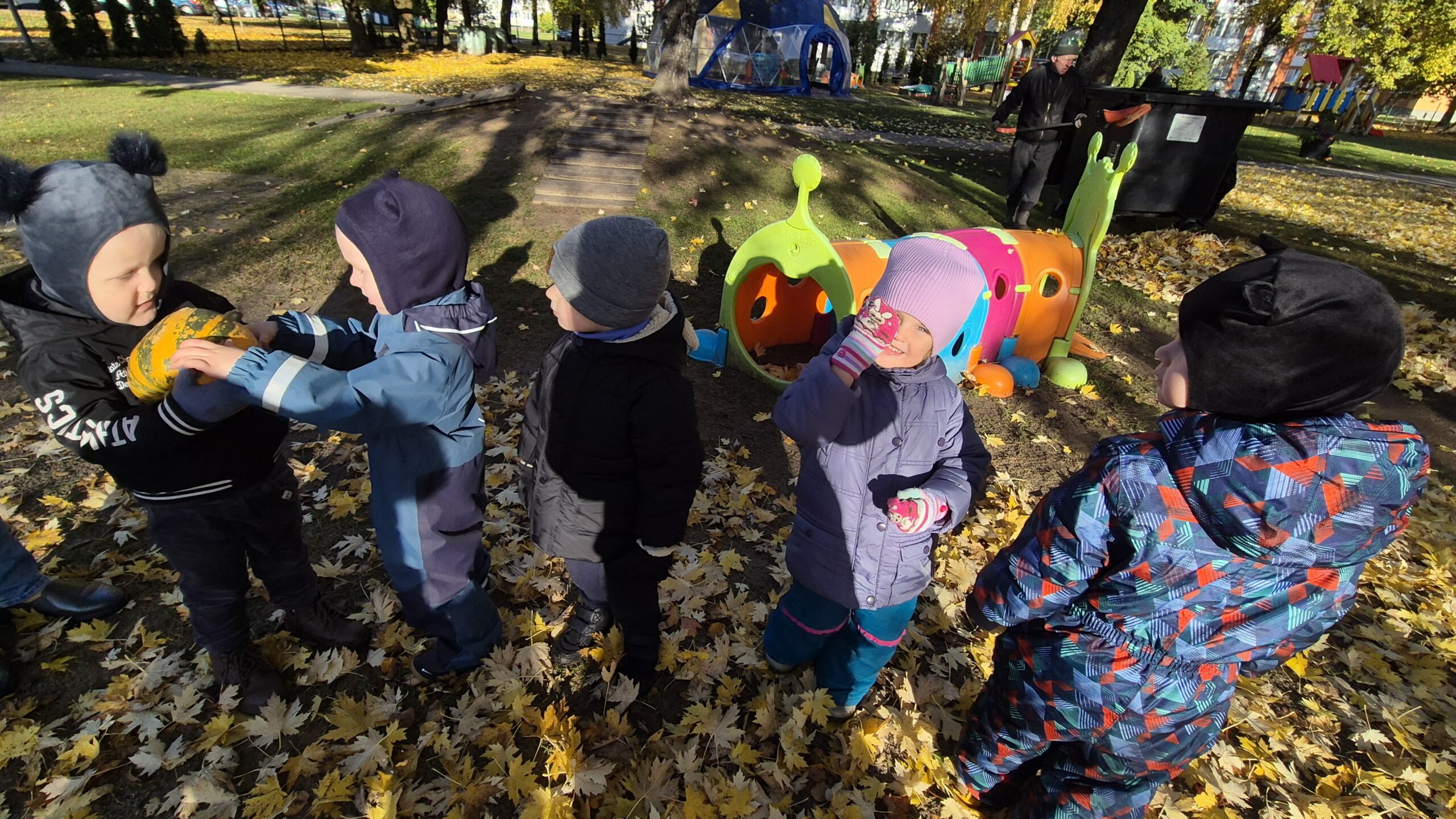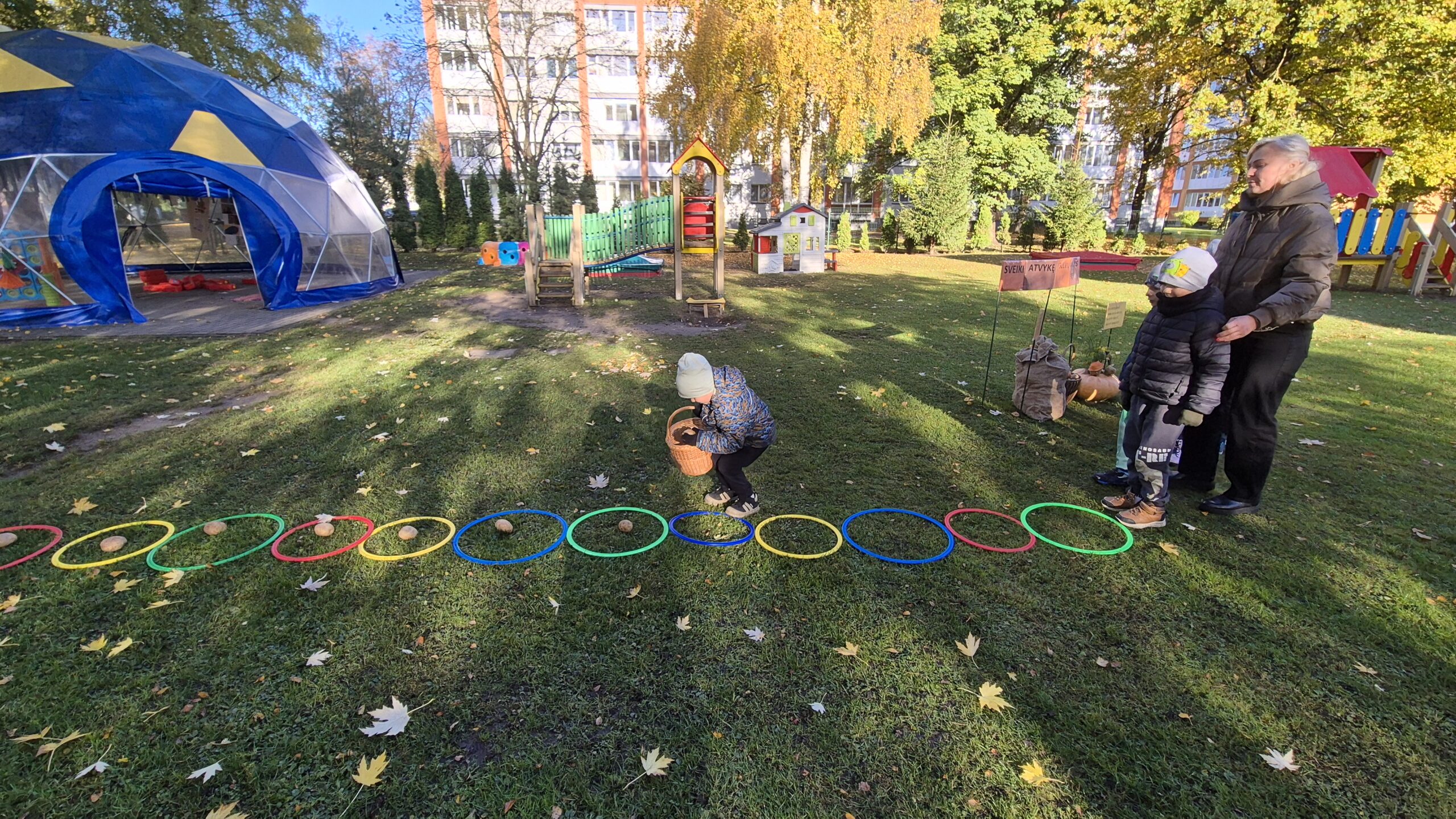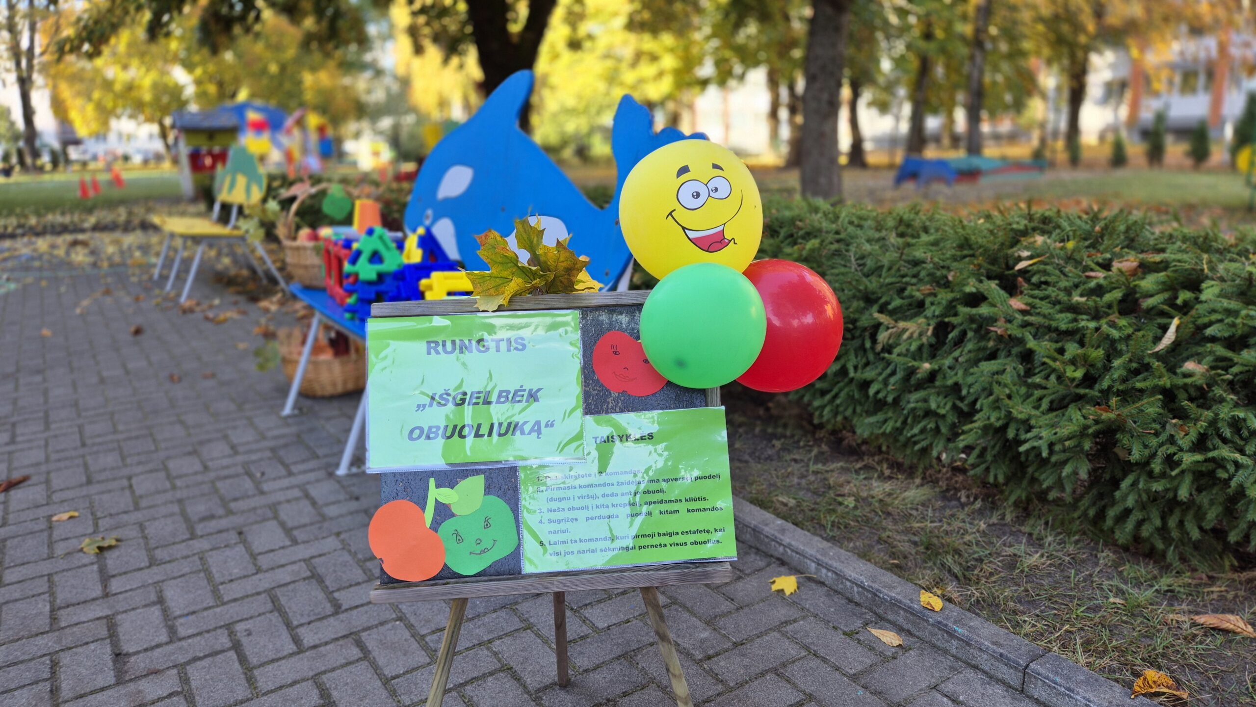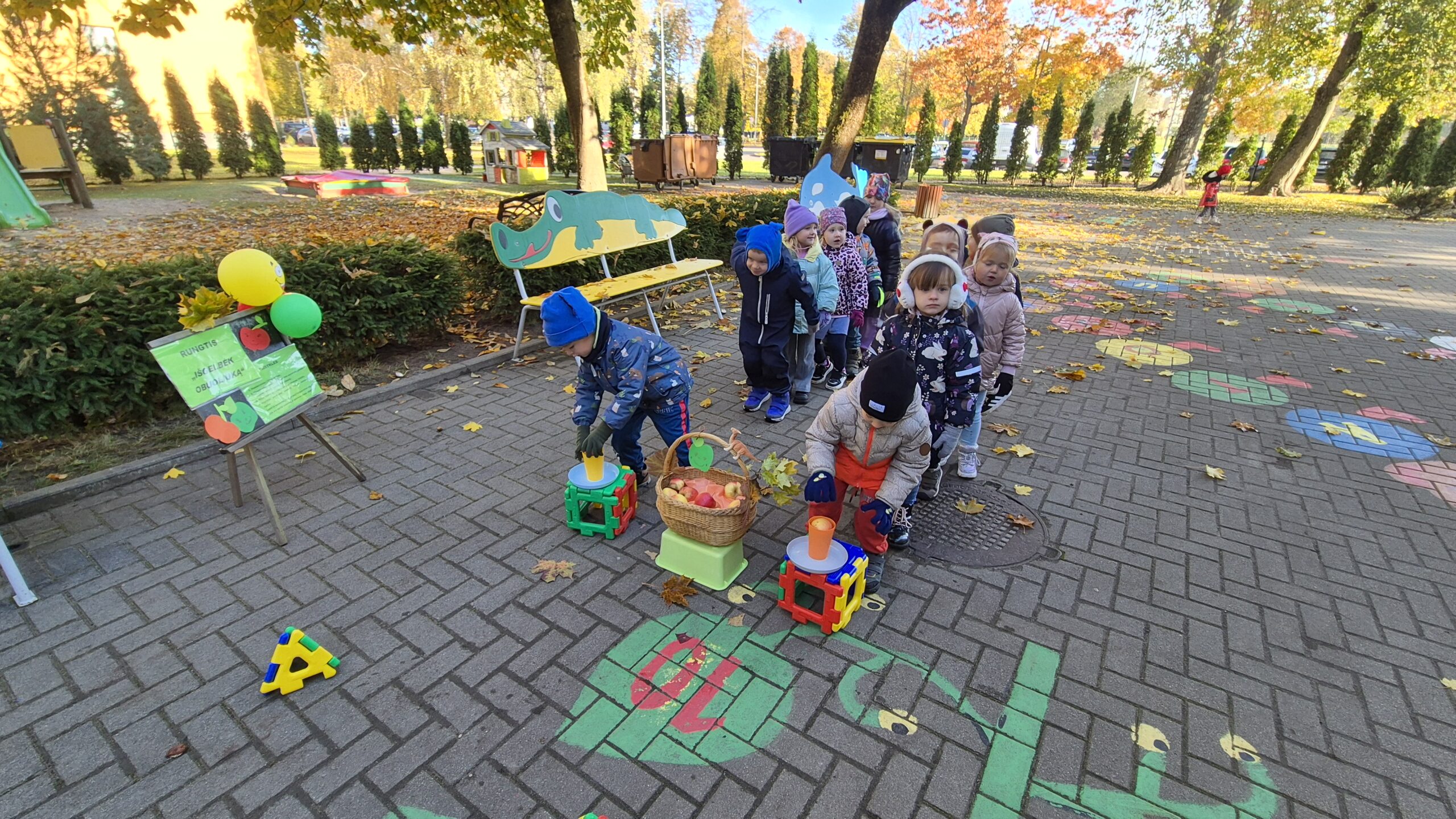 Šiandien, saulėtą ir gražų rudens rytmetį, darželyje vyko šventė „Rudens gėrybių olimpinės žaidynės“. Rudenėlis, Morkytė, Šalna ir Obuoliukas pakvietė vaikučius pasivaržyti linksmose estafetėse. Estafetės buvo labai įdomios: reikėjo vežti karutį kopūstų, „sodinti“ bulves, nešti maišą svogūnų, rūšiuoti cukinijas, sverti moliūgus ir t.t. Įveikę visas užduotis, pažaidę rudens lapų žaidimus, „kodėlčiukai“ grįžo į grupes.