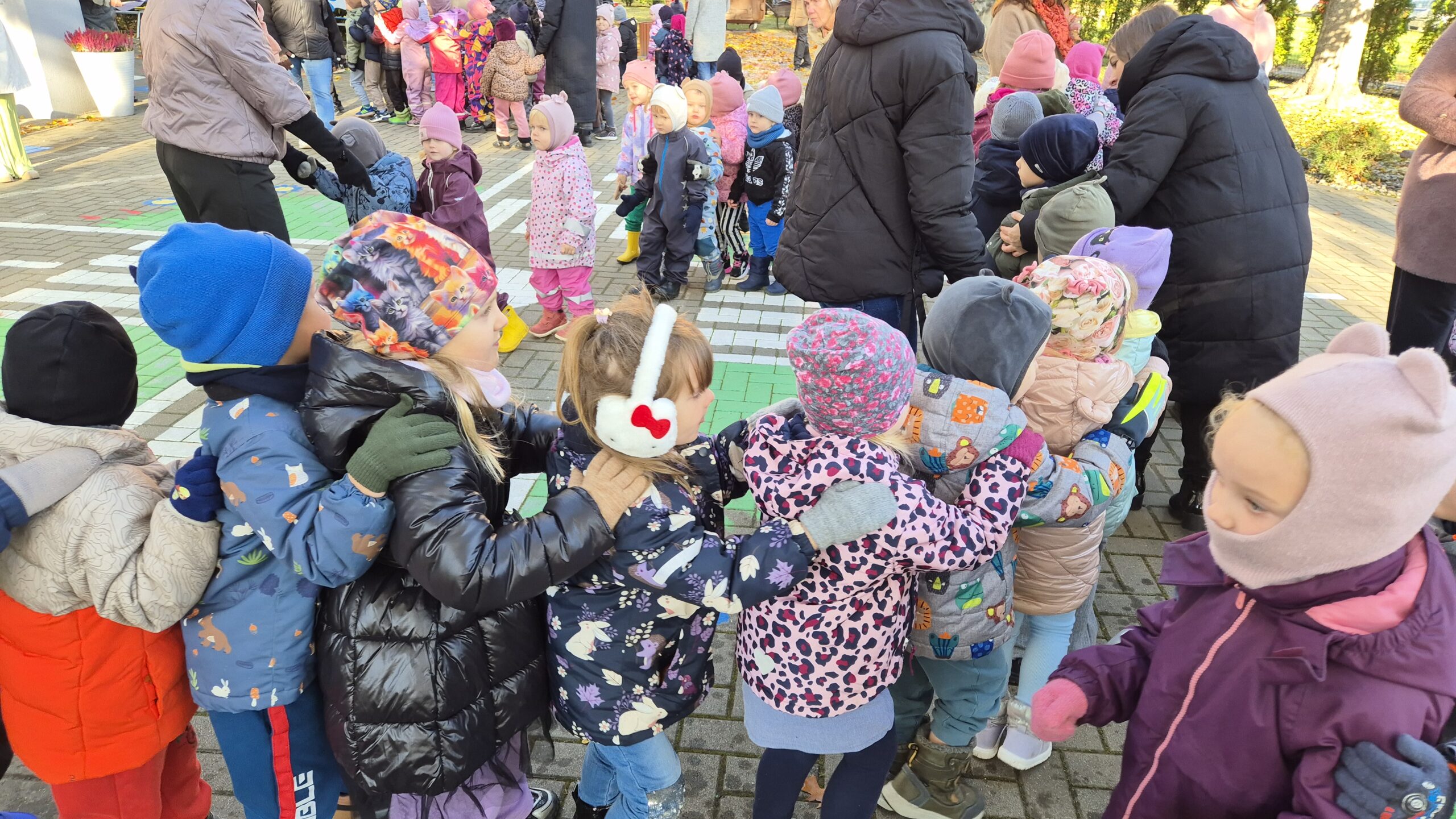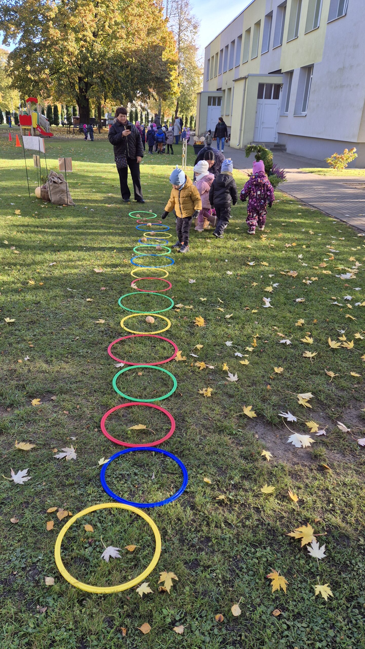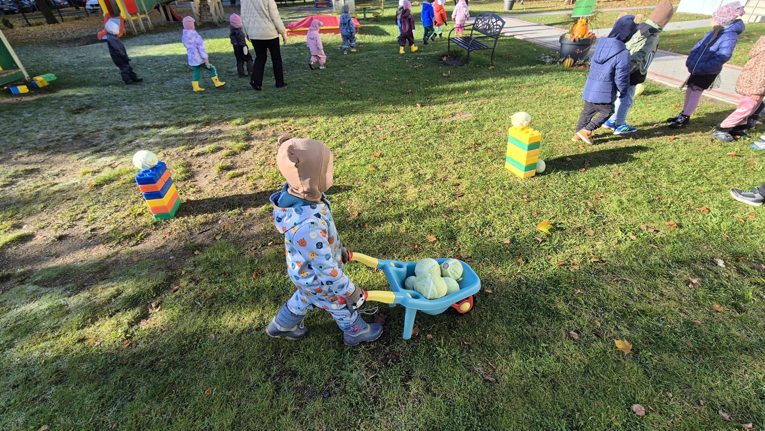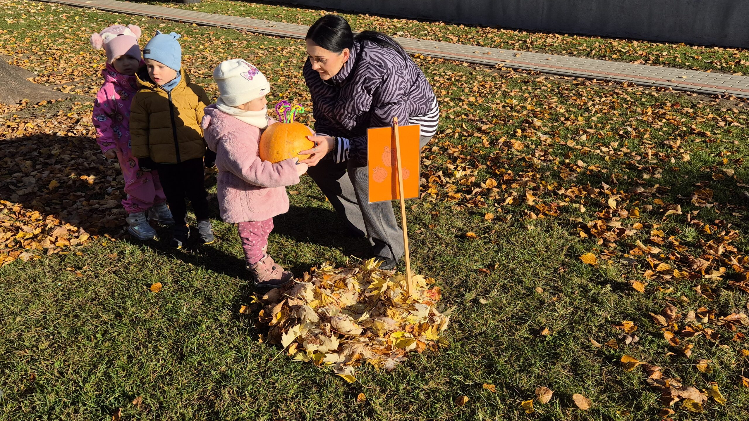 Šiandien, saulėtą ir gražų rudens rytmetį, darželyje vyko šventė „Rudens gėrybių olimpinės žaidynės“. Rudenėlis, Morkytė, Šalna ir Obuoliukas pakvietė vaikučius pasivaržyti linksmose estafetėse. Estafetės buvo labai įdomios: reikėjo vežti karutį kopūstų, „sodinti“ bulves, nešti maišą svogūnų, rūšiuoti cukinijas, sverti moliūgus ir t.t. Įveikę visas užduotis, pažaidę rudens lapų žaidimus, „kodėlčiukai“ grįžo į grupes.