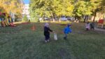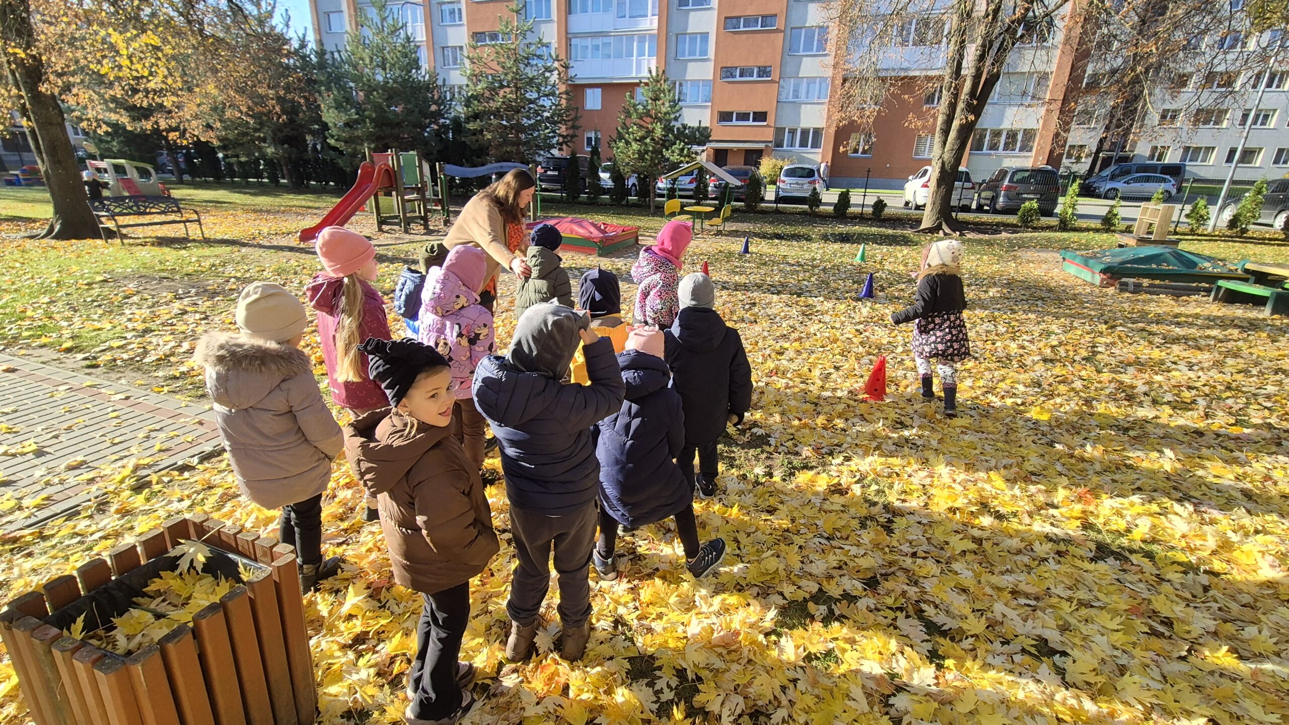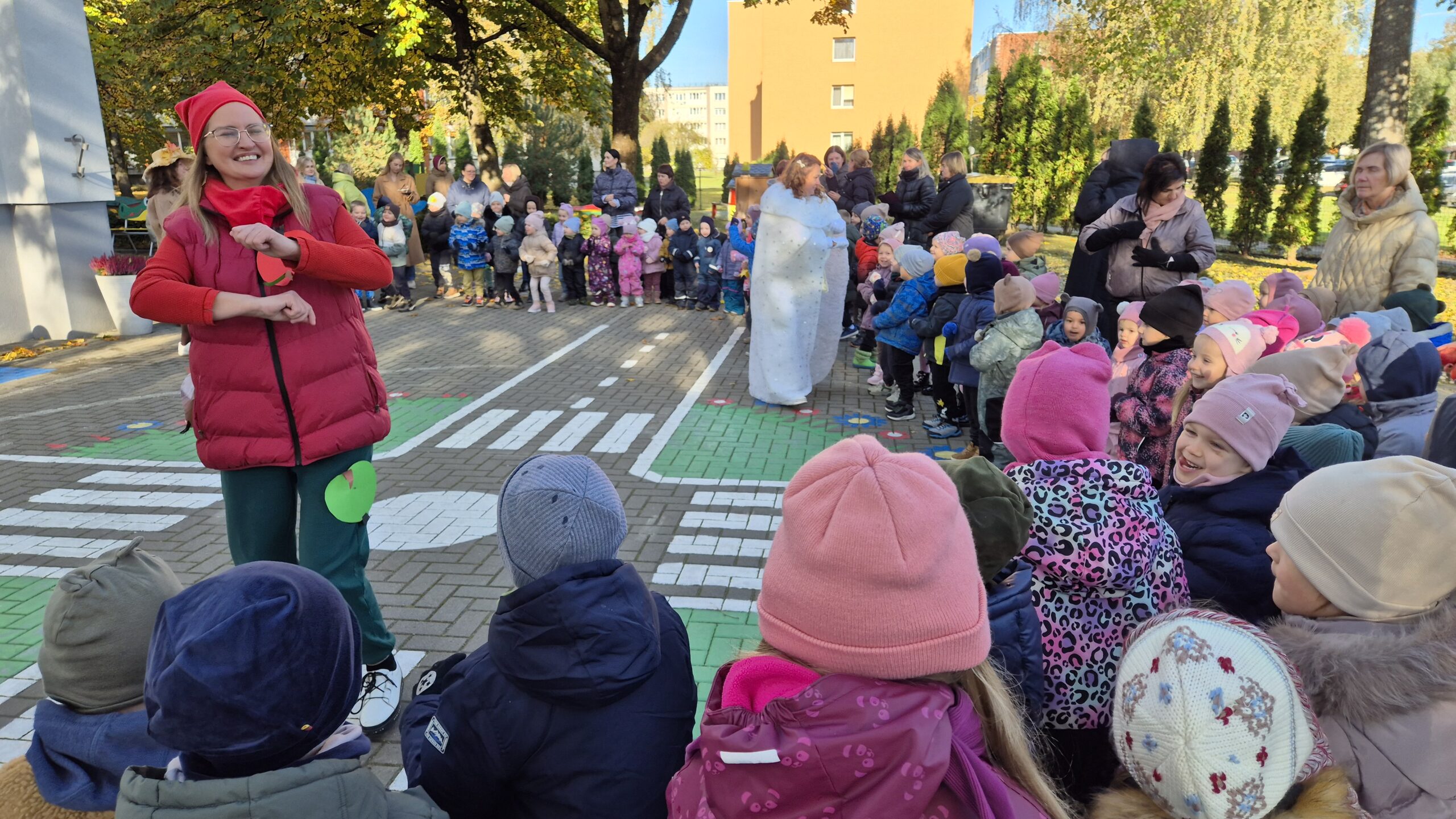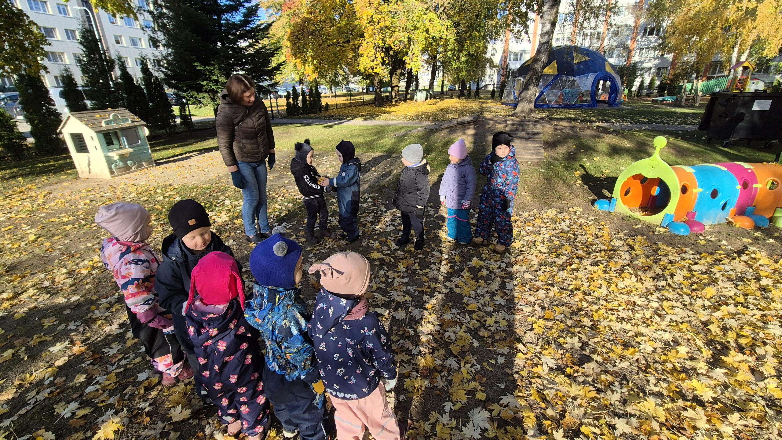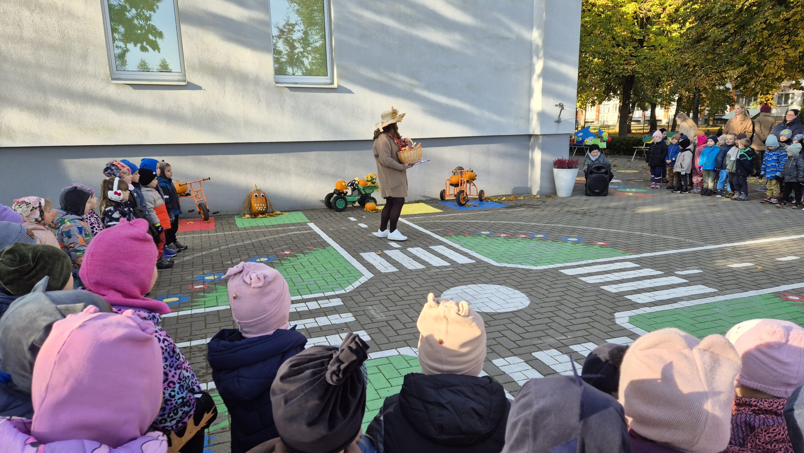 Šiandien, saulėtą ir gražų rudens rytmetį, darželyje vyko šventė „Rudens gėrybių olimpinės žaidynės“. Rudenėlis, Morkytė, Šalna ir Obuoliukas pakvietė vaikučius pasivaržyti linksmose estafetėse. Estafetės buvo labai įdomios: reikėjo vežti karutį kopūstų, „sodinti“ bulves, nešti maišą svogūnų, rūšiuoti cukinijas, sverti moliūgus ir t.t. Įveikę visas užduotis, pažaidę rudens lapų žaidimus, „kodėlčiukai“ grįžo į grupes.