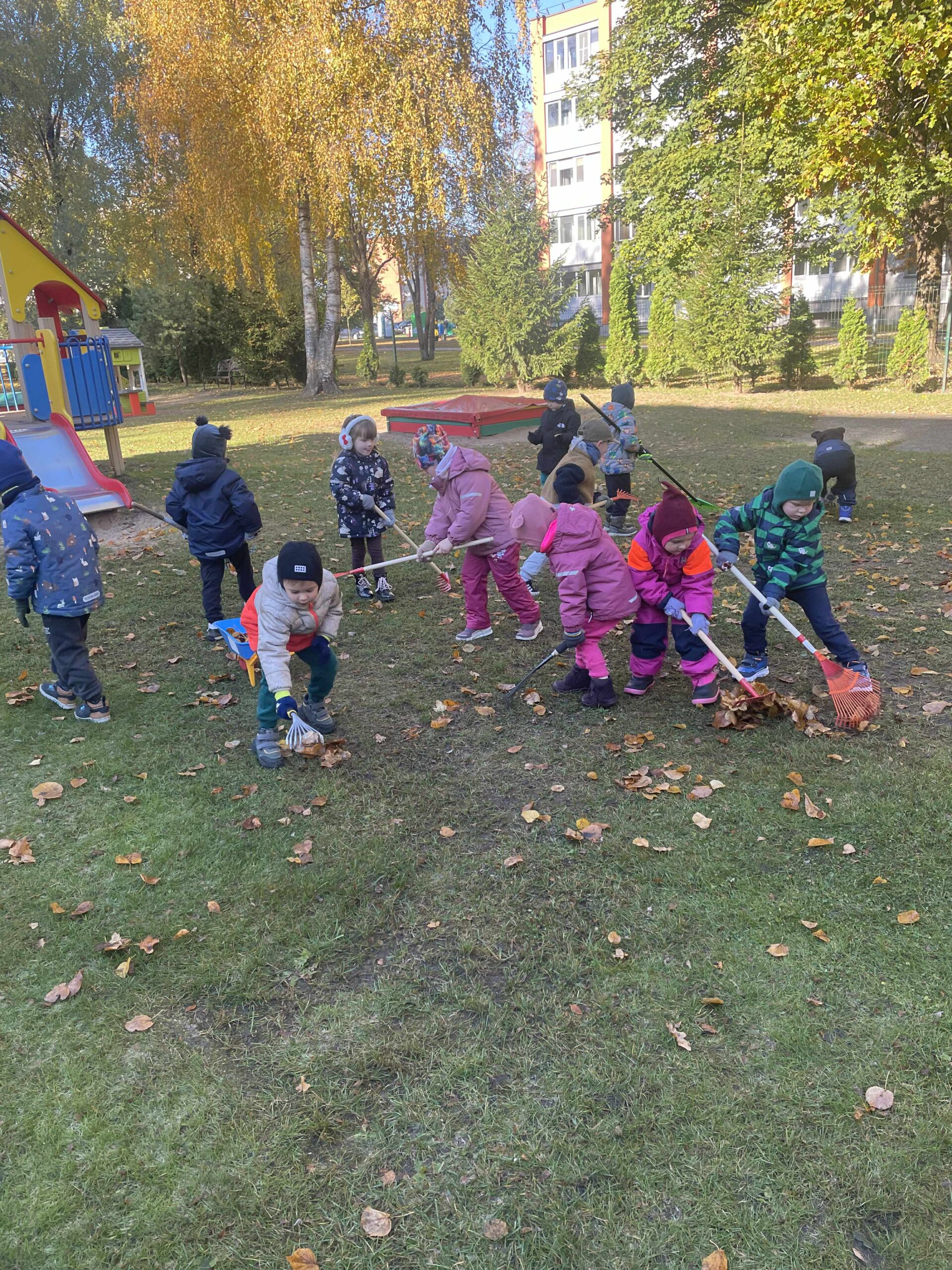 Linksma talkos diena darželio kieme! Mažieji su šypsenomis ir mažais grėbliukais padėjo surinkti rudens lapus. Kartu dirbti – smagu!