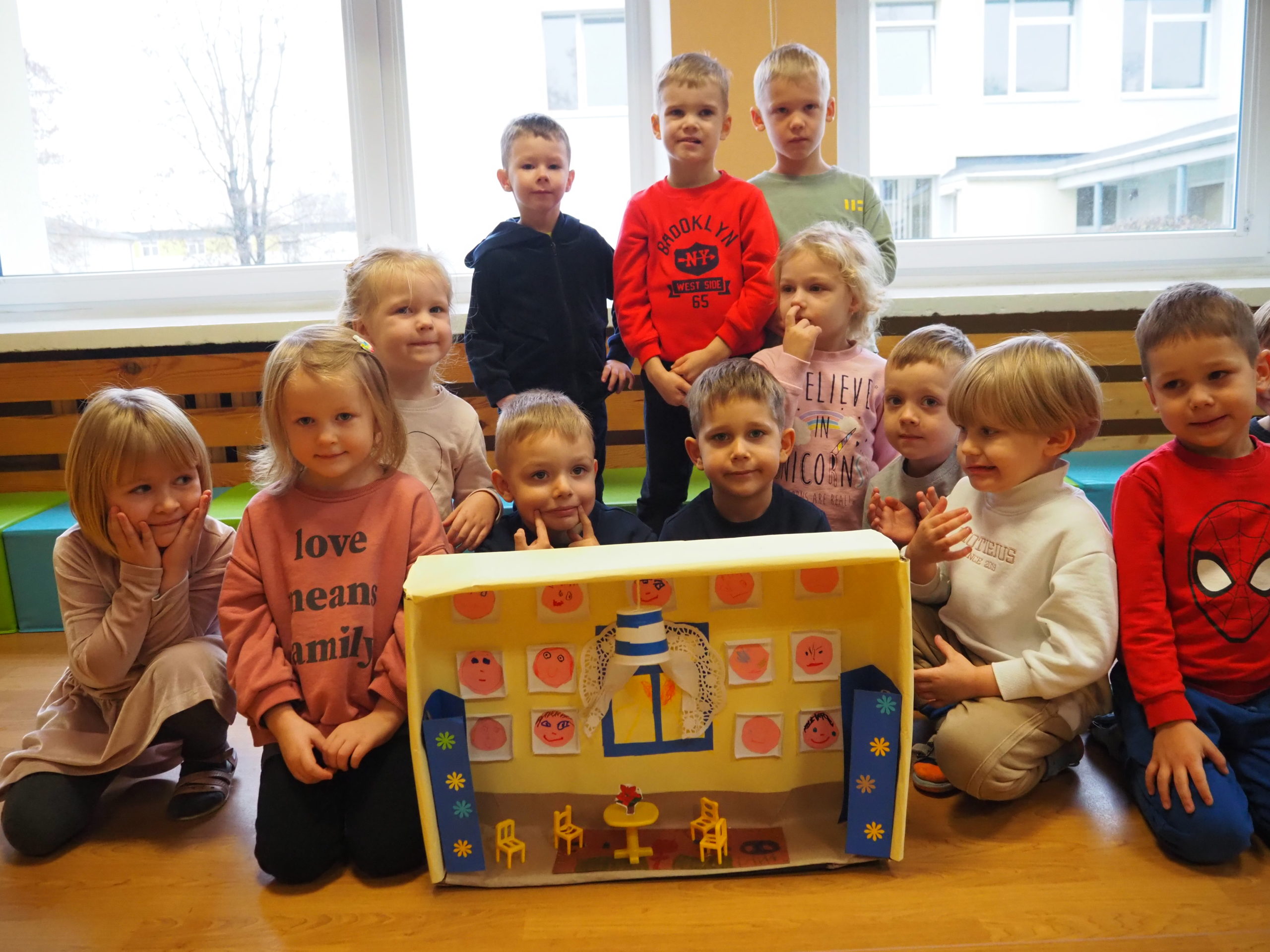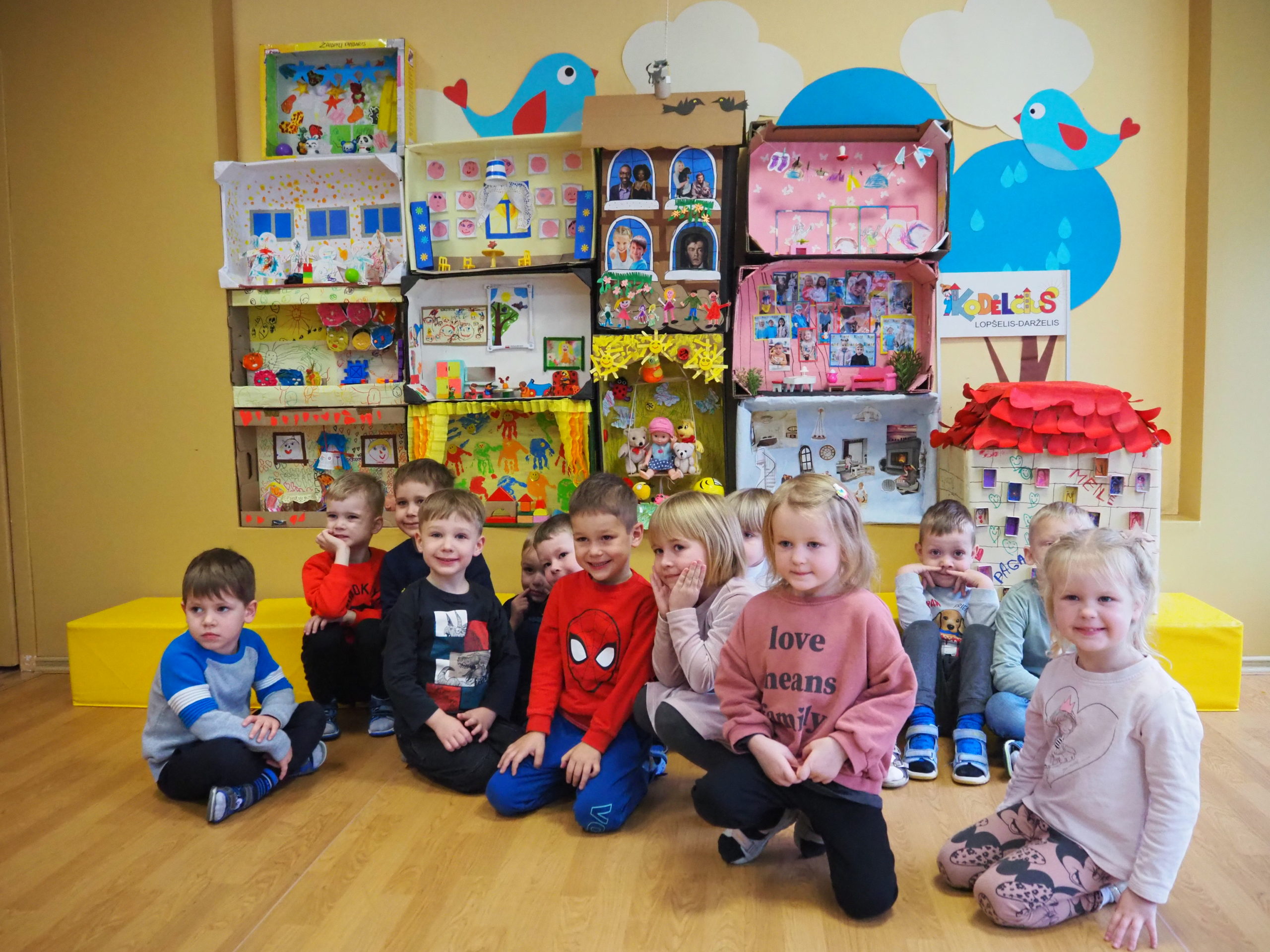 Šių metų Tolerancijos dienos simbolis – namas. Su grupėse kurtais namais „Kodėlčiaus“ vaikučiai rinkosi į salę statyti Tolerancijos namo.